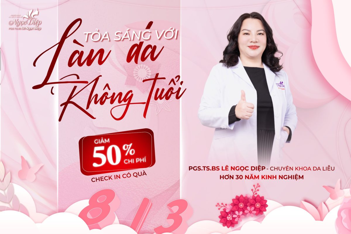 Bất cứ người phụ nữ nào cũng có quyền được yêu thương và làm đẹp. Với sứ mệnh đồng hành cùng chị em đẹp hơn mỗi ngày, Phòng Khám Da Liễu Và Thẩm Mỹ PGS.TS.BS Lê Ngọc Diệp dành tặng chị em hàng loạt ưu đãi hấp dẫn GIẢM 50% CHI PHÍ nhân ngày Quốc Tế Phụ Nữ 8/3.