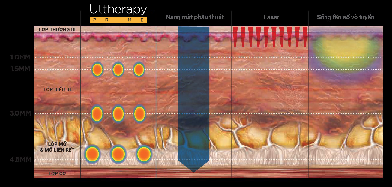 - Tác động điều trị sâu bên dưới da hơn nhiều so với laser và RF (sóng tần số vô tuyến)